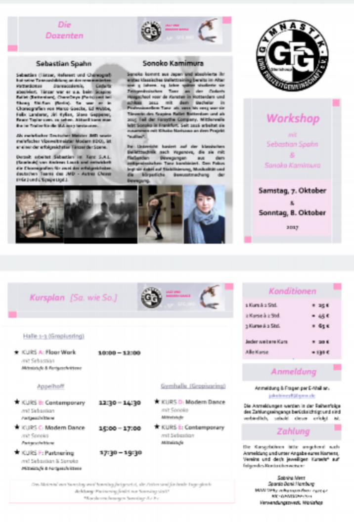 Contemporary Dance Workshop with Sebastian Spahn and Sonoko Kamimura Saturday, October 7, 2017 10:00 PM 22:00 Sunday, October 8, 2017 5:00 PM 17:00 Google Calendar ICS